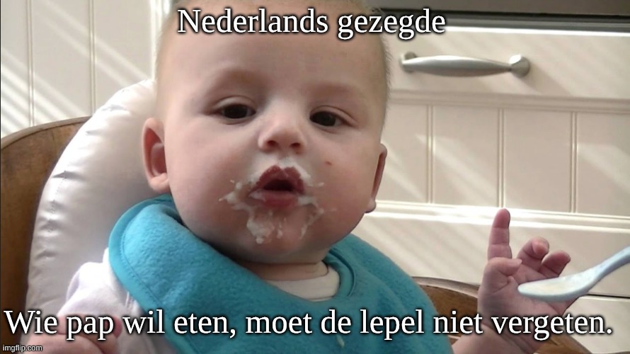 Wie pap wil eten, moet de lepel niet vergeten.