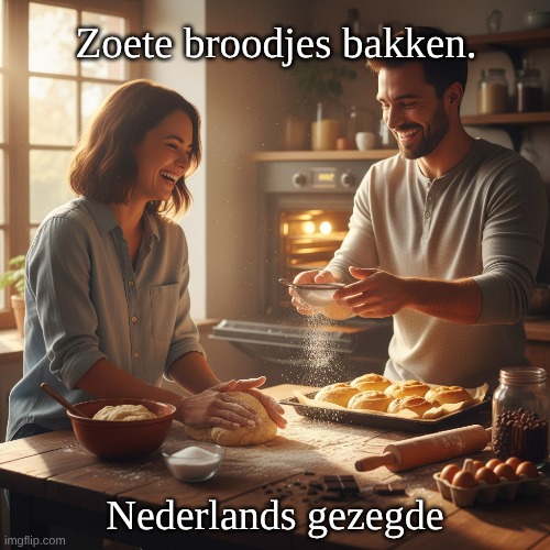 Foto: Peter van Geest AI Betekenis:“Zoete broodjes bakken” betekent dat je je best doet om iemand te vriend te houden of om een goede relatie te onderhouden, vooral door iets te doen wat de ander leuk vindt of wat hen tevredenstelt. Het kan ook impliceren dat je iets doet om de situatie te verzachten of om een conflict te vermijden. Oorsprong: De oorsprong van de uitdrukking is niet precies te traceren, maar het verwijst naar het idee van het bakken van zoete broodjes, wat een symbolische handeling is voor het creëren van iets aangenaams of prettigs. Het idee van “broodjes bakken” kan ook een verwijzing zijn naar de traditionele Nederlandse bakkerij, waar zoete broodjes vaak populair zijn. Auteur: Er is geen specifieke auteur verbonden aan dit spreekwoord, aangezien het een deel uitmaakt van de Nederlandse volksmond en cultuur. Spreekwoorden zijn vaak anoniem en ontstaan door de tijd heen in de samenleving.