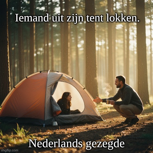 Afbeelding: Peter van Geest AI. Betekenis 🧠:“Iemand uit zijn tent lokken” betekent: Iemand uit de reserve lokken, aan het praten krijgen. Iemand provoceren zodat die reageert of zijn ware mening/emotie toont. Connotatie: Kan neutraal/positief zijn (iemand voorzichtig aanmoedigen om zich te uiten). Kan ook negatief zijn (iemand op stang jagen om een boze reactie uit te lokken). Oorsprong (etymologie) 🏕️:Letterlijk beeld: de “tent” als veilige schuilplaats (kamp/leger/kamperen). Figuurlijk: iemand uit zijn veilige positie halen zodat die in actie komt of zich uitspreekt. Taalhistorisch: De uitdrukking is in de 20e eeuw in het Nederlands gangbaar geworden. Waarschijnlijk beïnvloed door het oudere beeld “iemand uit zijn schulp lokken” (schulp = schelp), met vergelijkbare betekenis: iemand uit zijn terughoudendheid halen. Kortom: een metaforische, volkstaal-achtige vorming zonder specifieke bedenker. Auteur van het “citaat” ✍️:Er is geen auteur. Het is een vaste uitdrukking/idioom uit het Nederlands, niet toe te schrijven aan één persoon. Voorbeelden 🗣️:“De interviewer probeerde de politicus uit zijn tent te lokken met scherpe vragen.” “Met een paar plagerige opmerkingen lokte ze hem uit zijn tent.” “Laat je niet uit je tent lokken tijdens het debat.”Synoniemen en verwante uitdrukkingen 🔄: Iemand prikkelen/uitdagen. Iemand een reactie ontlokken. Iemand uit de reserve lokken. Iemand op stang jagen (sterker/negatiever). Iemand uit zijn schulp laten kruipen (milder, meer ‘openbloeien’). Variaties en gebruik ✍️: Vorm:“iemand uit zijn tent lokken” en “iemand uit de tent lokken” komen beide voor. Ook reflexief: “Zich uit zijn tent laten lokken” = happen op de provocatie. Vertaling/benadering in het Engels 🌍: To provoke someone (into a reaction). To get a rise out of someone. To draw someone out (milder, bij openheid). To bait someone into responding.
