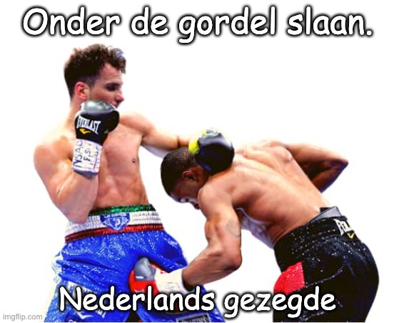 Foto willingo.com. Betekenis 🥊:Letterlijk: Bij vechtsporten (zoals boksen) is het verboden om je tegenstander onder de gordel (meestal de navel) te slaan. Dit wordt gezien als een gemene en vaak pijnlijke overtreding. Figuurlijk:“Onder de gordel slaan” betekent dat je iemand op een oneerlijke, gemene of persoonlijke manier aanvalt, vaak op een gevoelig punt, in een discussie, ruzie of conflict. Het is een aanval die niet gaat over de inhoud, maar bedoeld is om de ander te kwetsen of te beschadigen. Voorbeelden: Tijdens een discussie persoonlijke opmerkingen maken over iemands uiterlijk of karakter. Geheimen of zwakheden van iemand openbaar maken om die persoon in diskrediet te brengen. Verwijzen naar een pijnlijke gebeurtenis in iemands verleden om diegene te manipuleren. Oorsprong 📜: De uitdrukking “onder de gordel slaan” komt, zoals je wellicht al vermoedt, uit de vechtsporten, met name het boksen. Boksen en de ‘gordellijn’: In het boksen zijn er duidelijke regels over waar je je tegenstander wel en niet mag raken. Het gebied onder de navel (of, afhankelijk van de precieze regels, een denkbeeldige lijn die over het middel loopt) is een ‘foul area’. Een stoot op deze plek wordt als onreglementair en onsportief beschouwd en kan leiden tot een waarschuwing of diskwalificatie. Overdrachtelijke betekenis: Door de jaren heen is de term overgegaan van de letterlijke boksring naar het dagelijks taalgebruik. De essentie van de overtreding – een gemene, oneerlijke aanval op een kwetsbare plek – bleef behouden in de figuurlijke betekenis. Het symboliseert een gebrek aan fair play en respect in verbale confrontaties. Auteur ✍️: Deze uitdrukking heeft geen specifieke auteur. Het is een volkse uitdrukking die organisch is ontstaan en geëvolueerd binnen de sportwereld en vervolgens is opgenomen in de algemene taal. Veel spreekwoorden en gezegden hebben geen bekende bedenker, maar zijn het resultaat van collectief taalgebruik door de eeuwen heen.💡