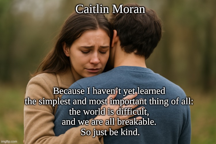 Because I haven’t yet learned the simplest and most important thing of all: the world is difficult, and we are all breakable. So just be kind.