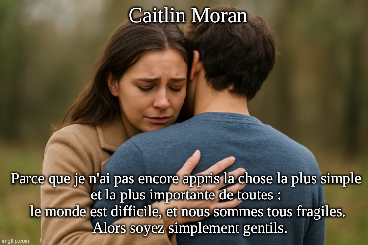 Parce que je n’ai pas encore appris la chose la plus simple et la plus importante de toutes : le monde est difficile, et nous sommes tous fragiles. Alors soyez simplement gentils.