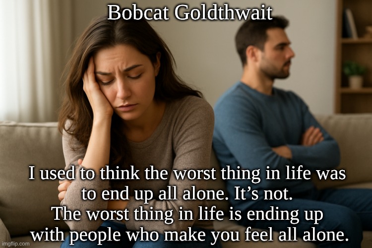 I used to think the worst thing in life was to end up all alone. It’s not. The worst thing in life is ending up with people who make you feel all alone.