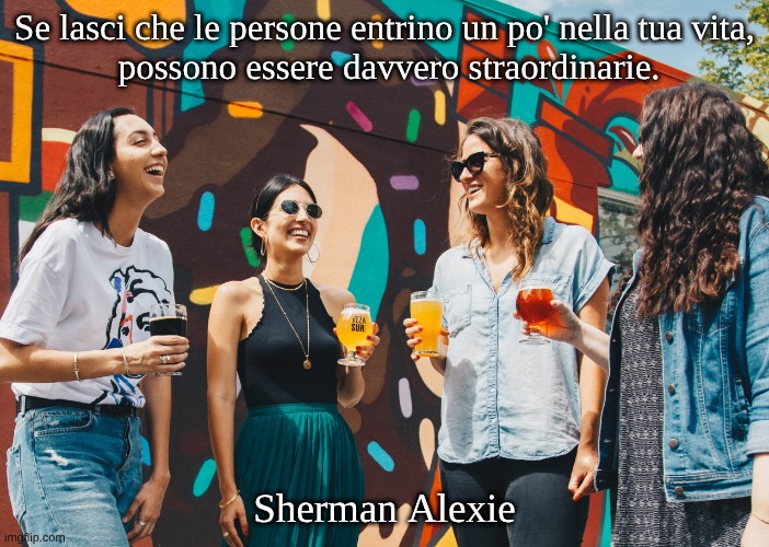 Grazie a questa apertura mentale, è possibile scoprire quanto possano essere preziose e stimolanti le altre persone. C’è un rischio nel permettere la vicinanza (vulnerabilità), ma la ricompensa – amicizie significative, amore, sostegno – può valere il rischio. Può anche essere visto come un appello alla crescita personale attraverso le relazioni: accogliendo gli altri, sviluppi te stesso, impari la fiducia, l’empatia e l’importanza della reciprocità. Fonte: Sherman Alexie, The Absolutely True Diary of a Part-Time Indian.