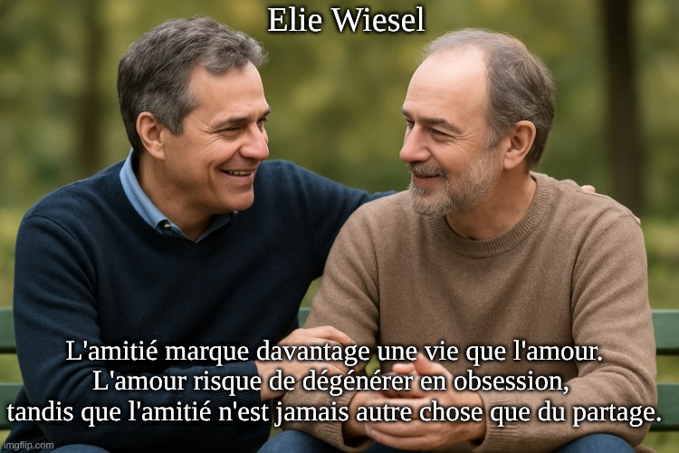 Image: Peter van Geest AI. Signification : L’amitié devient une relation éthique et formatrice : un lien qui renforce la dignité humaine, sans les aspects négatifs de l’obsession ou de la possessivité. Source : Citation d’Elie Wiesel (1928-2016), écrivain juif, lauréat du prix Nobel et survivant de la Shoah.