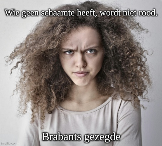 Foto: Andrea Piacquadio. Betekenis: Mensen die geen schaamte of zelfbewustzijn hebben, niet blozen — omdat ze niet begrijpen dat ze iets verkeerd of dom doen. Het gezegde koppelt blozen aan geweten en moreel besef. Oorsprong: Het is een oud Nederlands spreekwoord met wortels in een bredere Europese gedachte: blozen is een teken van bewustzijn en schaamte. Het komt voor in de Brabantse volksmond, waardoor het vaak als Brabants gezegde wordt gezien, maar het is niet exclusief Brabants en circuleerde al breder in Nederland.