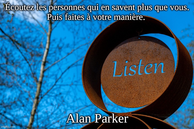 Écoutez les personnes qui en savent plus que vous. Puis faites à votre manière.