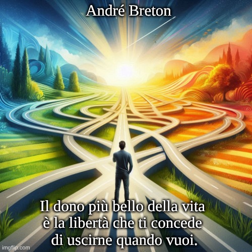 Origine: Opera: Il detto deriva dal libro “Clair de terre“, scritto da André Breton nel 1923. Surrealismo: André Breton è stato una figura di spicco del movimento surrealista, incentrato sull’esplorazione della mente umana e dei sogni. Autore: André Breton: poeta e scrittore francese, spesso considerato il fondatore del Surrealismo. Le sue opere sono ricche di simbolismo ed esplorano temi come la libertà, l’amore e il subconscio. Conclusione: Il detto ci ricorda il potere della libertà e il valore del prendere decisioni nella nostra vita. Incoraggia la riflessione sulle possibilità che abbiamo di dare forma alla nostra vita.