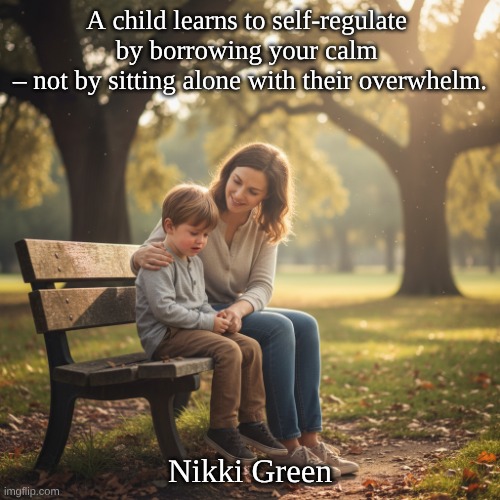 A child learns to self-regulate by borrowing your calm – not by sitting alone with their overwhelm.