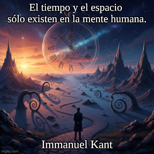 Imagen: Peter van Geest AI. Significado:Tiempo y espacio: Estos conceptos se consideran a menudo dimensiones fundamentales de la realidad. Mente humana: La afirmación sugiere que nuestra percepción del tiempo y el espacio no es absoluta, sino una construcción mental. Interpretación: La idea es que el tiempo y el espacio son esencialmente subjetivos y dependen de cómo las personas los experimentan y los comprenden. Origen: La afirmación se atribuye a menudo al filósofo alemán Immanuel Kant, quien argumentó en su obra “Crítica de la razón pura” (1781) que el tiempo y el espacio son modos de nuestra percepción. La idea de que el tiempo y el espacio no existen independientemente de nosotros, sino como conceptos en nuestra mente, es un tema central en la filosofía moderna. Autor: Hans Peter Roel también se menciona a veces, pero no es el autor de esta afirmación específica. Parece haber una confusión. Immanuel Kant es el autor correcto, quien presentó ideas similares en sus obras filosóficas. Conclusión: Esta afirmación nos anima a reflexionar sobre la naturaleza de nuestra realidad y cómo nuestra mente interpreta el mundo que nos rodea. Es una invitación a reflexionar sobre la experiencia subjetiva del tiempo y el espacio.
