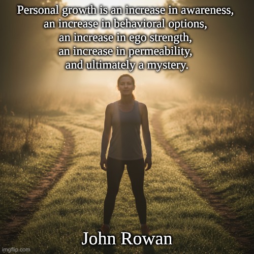 Personal growth is an increase in awareness, an increase in behavioral options, an increase in ego strength, an increase in permeability, and ultimately a mystery.