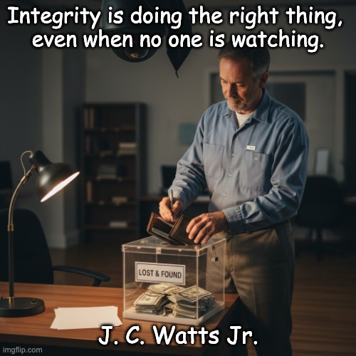 Image: Peter van Geest AI. Meaning 🧠 🧭:Integrity = doing the right thing without supervision: when no one sees you; if you don’t get credit for it; if you could get away with it. The follow-up sentences make it extra sharp: he criticizes a culture in which people think: “the only right thing is to get away with it”, “the only wrong thing is to get caught” ⚖️, he sets a moral standard in return: acting rightly, even without external control. 🧬 Origin: idea vs. formulation 🏛️: 1) The idea is much older. The idea of “doing good without anyone watching” is classic in moral philosophy and religious ethics (virtue, duty, sincerity). 2) The wording in this quote is easy to date. The specific sentence described here was demonstrably spoken by J.C. Watts (1996) via the CNN transcript. ✅👤 Author🎙️: Speaker/author: J.C. Watts Jr. (then: U.S. Representative, Oklahoma). Where: Republican National Convention, San Diego. When: August 13, 1996.Source type: primary (speech transcript) ✅. 🔁 Relationship with the well-known “integrity” quote (EN & NL) 🔎 Much shared variant (English): “Integrity is doing the right thing, even when no one is watching.” 📌: Watts talks about character, not literally about integrity. The “integrity” sentence is essentially a paraphrase/variant that later became extremely popular (trainings, posters, internet). This variant is often given to C.S. Lewis, among others, but this is often source-uncertain (often without a verifiable primary location). ⚠️ Watts (1996) is therefore the best hard source for this idea in exactly this style.