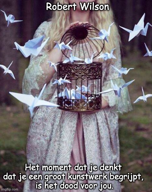 Foto: onbekend. Betekenis ✅ 🎭 🖼️:  Grote kunst is meerduidig: er is niet één “definitieve” uitleg. Als je denkt dat je het volledig begrijpt, sluit je het werk als het ware af; de verwondering en openheid verdwijnen. Het gezegde pleit dus voor blijvend kijken / lezen / ervaren in plaats van “oplossen”. 🔎 Oorsprong 🧾: Vroegste bekende vindplaats (volgens Quote Investigator): The New York Times, mei 1990. Context: artikel over een experimentele productie van Shakespeares King Lear in Frankfurt (Duitsland).