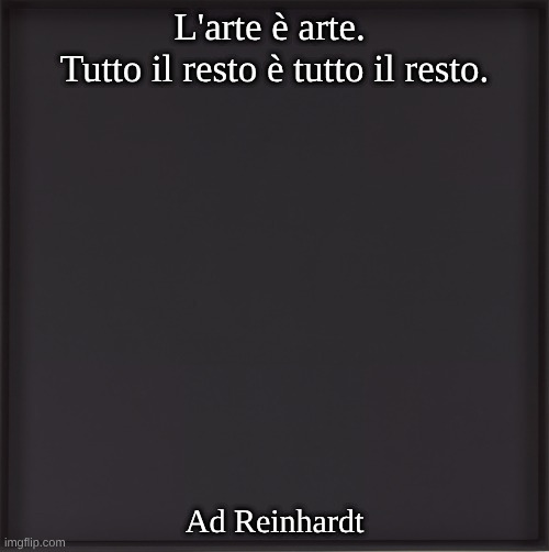 Ad Reinhardt Abstract Painting 1963. 🧠 Significato✍️: Un confine purista: l’arte dovrebbe essere solo arte, non uno strumento per: politica 🗳️; illustrazione/narrativa 📖; intrattenimento 🎭; auto-aiuto/terapia 🧘; decorazione/status/commercio 💰. È essenzialmente uno slogan contro la strumentalizzazione dell’arte: Arte = se stessa; tutto ciò che ha uno scopo esterno = “tutto il resto”. 🧷 Originale✅:Ad Reinhardt, “L’arte è arte. Tutto il resto è tutto il resto”. Vedrai anche una frase molto comune espansa da Reinhardt (sempre una sua idea, solo una forma di frase leggermente diversa): “L’unica cosa da dire sull’arte è che è una cosa sola. L’arte è arte-in-quanto-arte e tutto il resto è tutto il resto”. 👤 Autore:Ad Reinhardt (1913–1967) — Pittore astratto americano (famoso per i suoi ultimi “black paintings”) e un convinto sostenitore del purismo dell’arte come arte. 🧾 Origine / da dove proviene (“casa” affidabile per la citazione) 📚 Il posto più sicuro e standard per citare questa frase sono gli scritti raccolti di Reinhardt: Ad Reinhardt, in scritti/osservazioni sull'”arte come arte”, raccolti in: Art as Art: The Selected Writings of Ad Reinhardt, a cura di Barbara Rose (New York: Viking Press, 1975). ✅