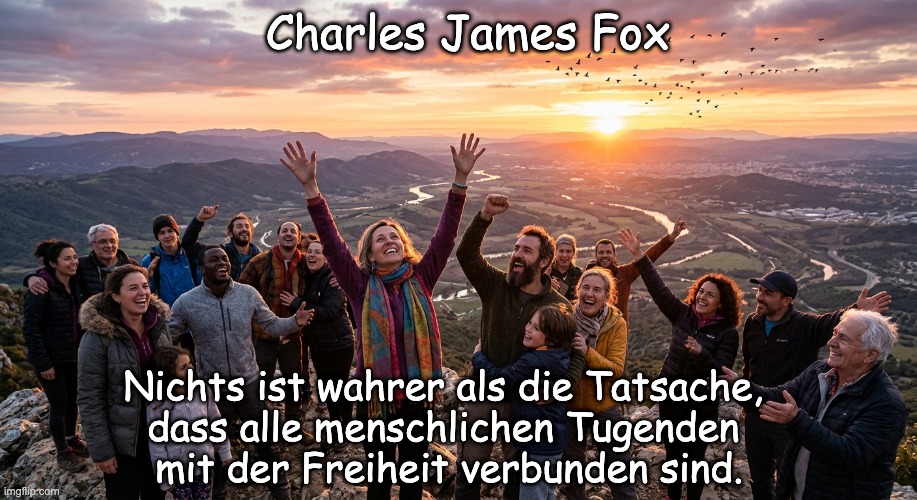 Bild: Peter van Geest AI. Bedeutung 📖: Dies ist eine tiefgründige Aussage über den Zusammenhang zwischen menschlichen Werten und dem grundlegenden Bedürfnis nach Freiheit. Die Aussage „Nichts ist wahrer, als dass alle menschlichen Tugenden mit Freiheit verbunden sind“ bedeutet, dass jede gute Eigenschaft oder Tugend des Menschen eng mit ‘Freiheit’ verbunden und von ihr abhängig ist. Tugenden wie Ehrlichkeit, Mut, Gerechtigkeit und Barmherzigkeit können sich nur in einem Umfeld voll entfalten und entwickeln, in dem Menschen frei Entscheidungen treffen können. Ein unfreier Mensch, beispielsweise unterdrückt, hat nicht die volle Möglichkeit, diese Tugenden zu praktizieren. Zum Beispiel:Mut: Es braucht Freiheit, mutig zu sein und für das Richtige einzustehen, selbst wenn dies Risiken birgt. Gerechtigkeit: Um gerecht zu handeln, muss man frei sein, die richtigen Entscheidungen zu treffen und andere fair zu behandeln. Barmherzigkeit: Mitgefühl zu zeigen und anderen zu helfen, erfordert die Freiheit, Entscheidungen auf der Grundlage von Mitgefühl zu treffen. Kurz gesagt, die Aussage legt nahe, dass Freiheit das Fundament ist, auf dem alle anderen Tugenden aufbauen können, und dass Tugenden ohne Freiheit eingeschränkt oder gar unmöglich sein können. 🌍 Autor: Dieses Zitat wird häufig Charles James Fox zugeschrieben, einem bedeutenden britischen Staatsmann und Politiker des späten 18. und frühen 19. Jahrhunderts. Er war bekannt für sein Eintreten für Bürgerrechte und seinen Widerstand gegen die Sklaverei. Obwohl das Zitat nicht direkt in seinen Schriften oder Reden zu finden ist, gilt es allgemein als Ausdruck seiner politischen Philosophie und seiner Überzeugung von der Bedeutung der Freiheit. 💡 Warum dieses Zitat wichtig ist: Dieses Zitat erinnert uns daran, dass Freiheit nicht nur ein grundlegendes Menschenrecht, sondern auch eine entscheidende Voraussetzung für die Entwicklung und Entfaltung unserer besten Eigenschaften ist. Es betont die Notwendigkeit, die Freiheit zu schätzen und zu verteidigen, nicht nur für uns selbst, sondern auch für andere, denn sie ist der Schlüssel zu einer gerechten und humanen Gesellschaft. In einer Welt, in der Freiheiten oft bedroht sind, ist dieses Zitat eine eindringliche Mahnung, wie wichtig es ist, für die Freiheit aller zu kämpfen. Es motiviert uns, für unsere Rechte einzustehen und gegen Unterdrückung und Ungerechtigkeit anzukämpfen.