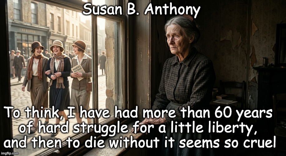 Image: Peter van Geest AI. Meaning: The saying expresses ‘bitterness, sadness, and frustration’. The core is: someone has ‘fought for freedom or equal rights for more than sixty years’, but is in danger of ‘dying without living to see the result themselves’. In the context of Susan B. Anthony, it almost certainly concerns ‘women’s rights’, particularly women’s suffrage. Origin: The statement is usually linked to the ‘late years of Susan B. Anthony’. She had fought for women’s suffrage for ‘decades’, but died in 1906. National women’s suffrage in the United States did not come about until 1920 with the 19th Amendment. The thought behind the quote therefore fits her situation very well. However, the ‘exact wording is not well documented in a primary source’ and it appears to be likely a ‘later paraphrase or tradition’. Author: The saying is often attributed to Susan B. Anthony. As an ‘idea or sentiment’, this is likely correct. As a ‘literal quote’, the attribution is ‘uncertain’. The safest phrasing is therefore: “attributed to Susan B. Anthony” or: “probably a paraphrase of Susan B. Anthony’s feelings”.