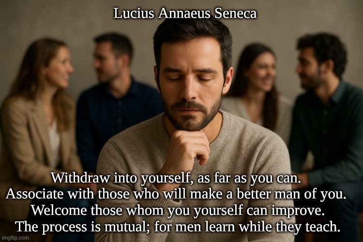 Withdraw into yourself, as far as you can. Associate with those who will make a better man of you. Welcome those whom you yourself can improve. The process is mutual; for men learn while they teach.